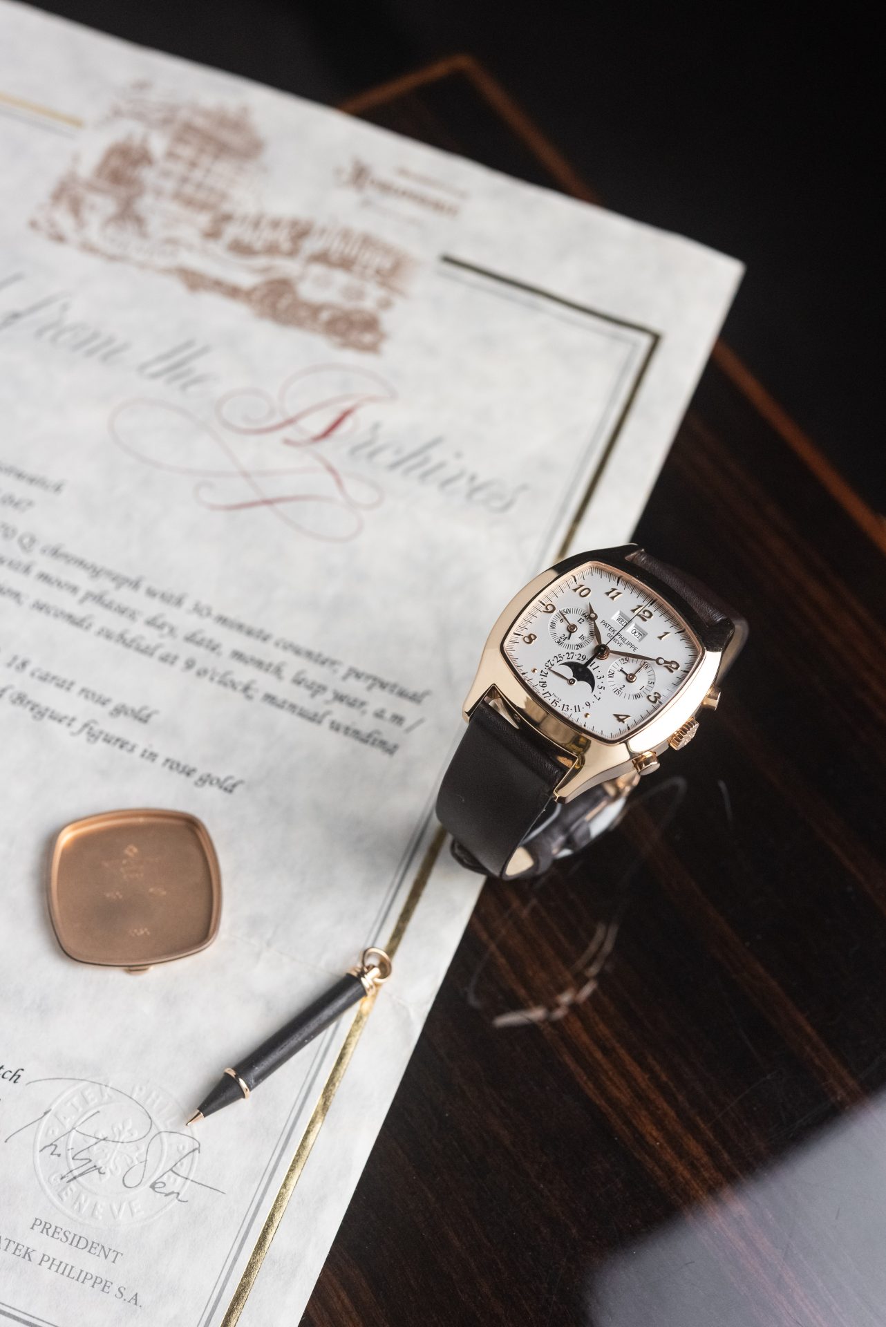 The watch is accompanied by a Patek Philippe Extract from the Archives, officially certifying its production and original configuration. It also features a double case back.