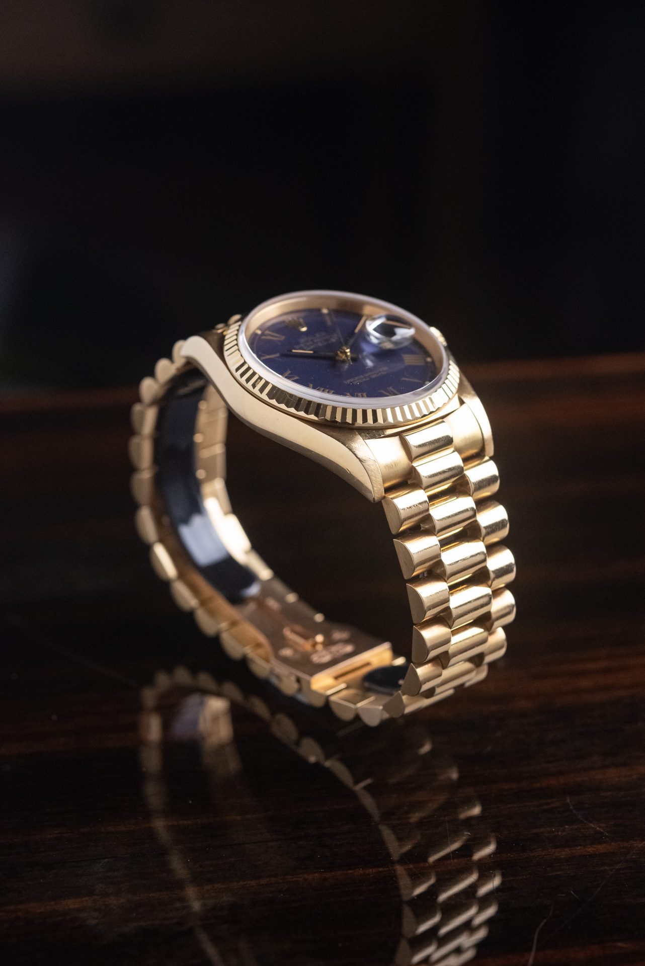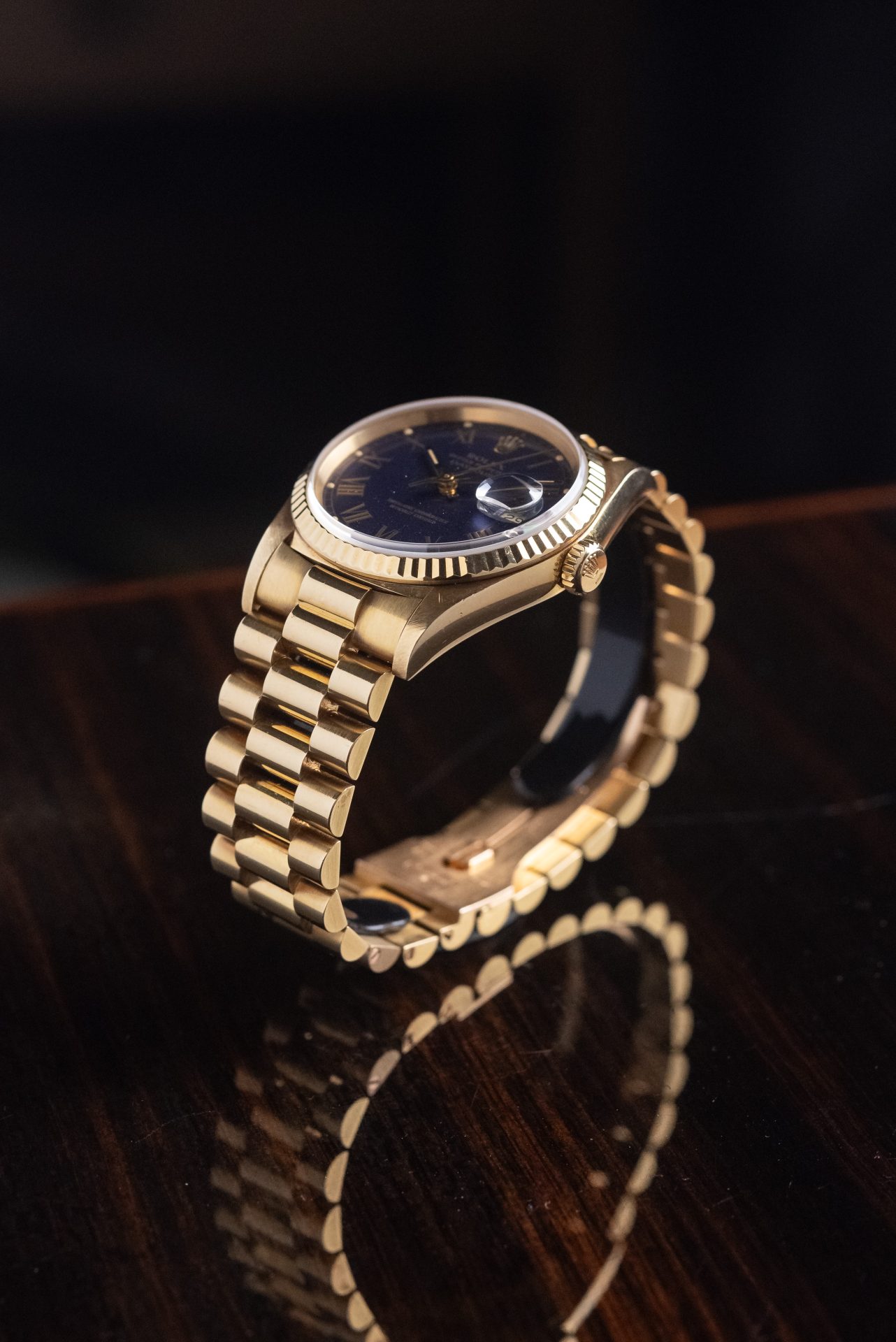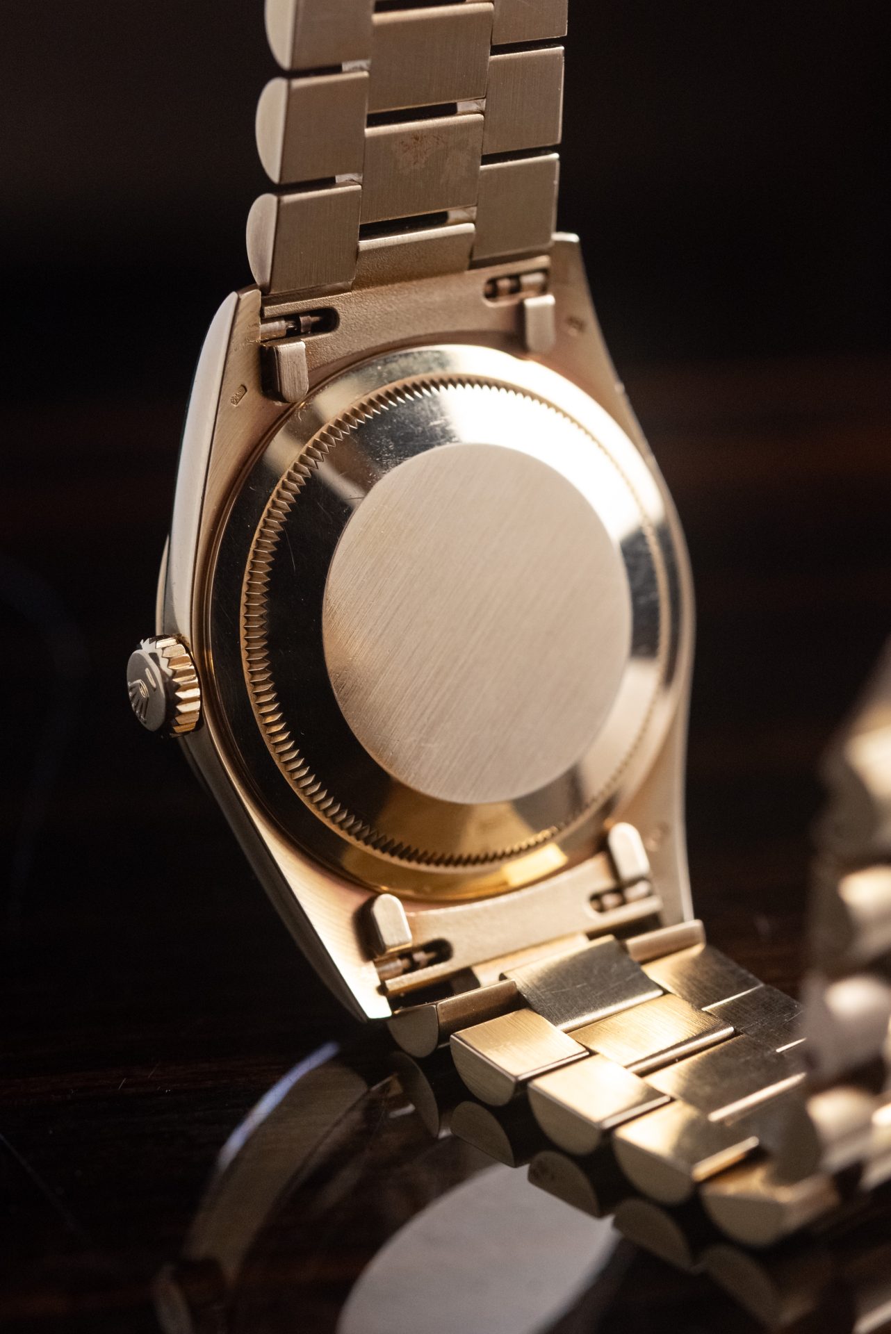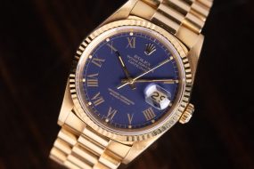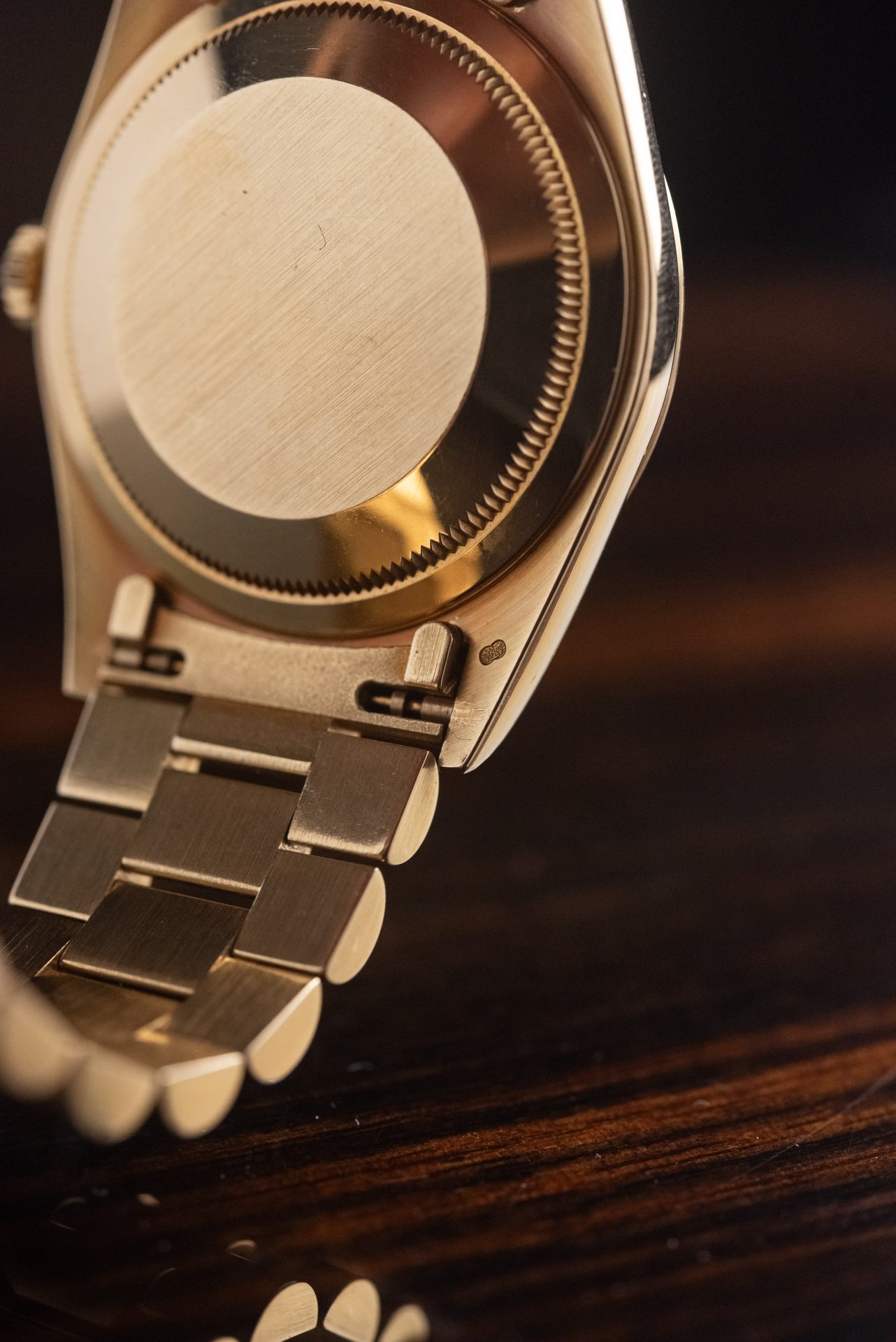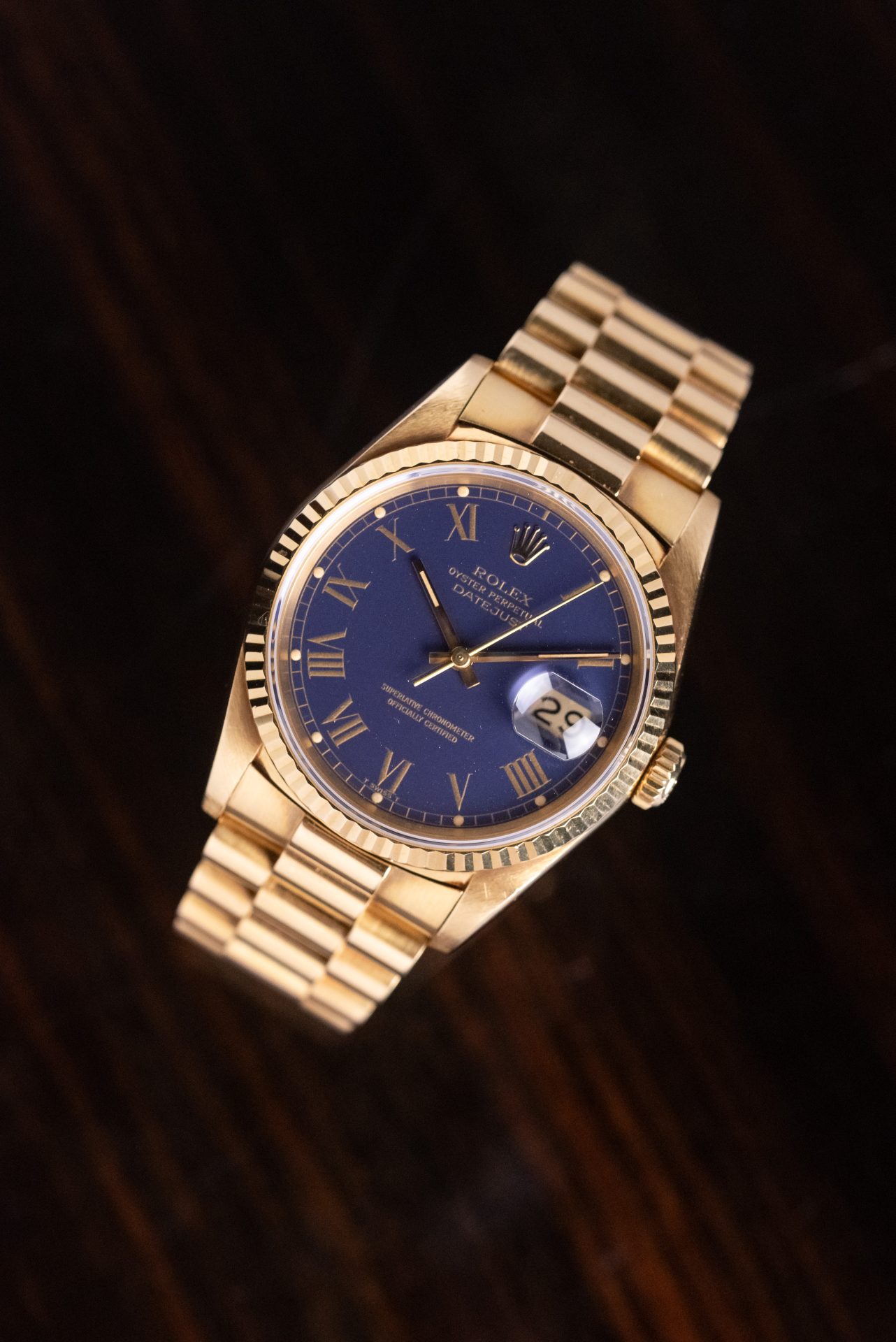 This is a Rolex DateJust Ref. 16238, an iconic piece from the 1980s. Crafted entirely from 18K yellow gold, it stands out for its Buckley dial with Roman numerals and gold hands that enhance its classic elegance. This timepiece comes with all its original period accessories, including a box, warranty, and original receipt from the historic Rocca di Padova jewelry store. A piece that embodies charm, history, and authenticity, a perfect example of Rolex’s prestige and refinement.