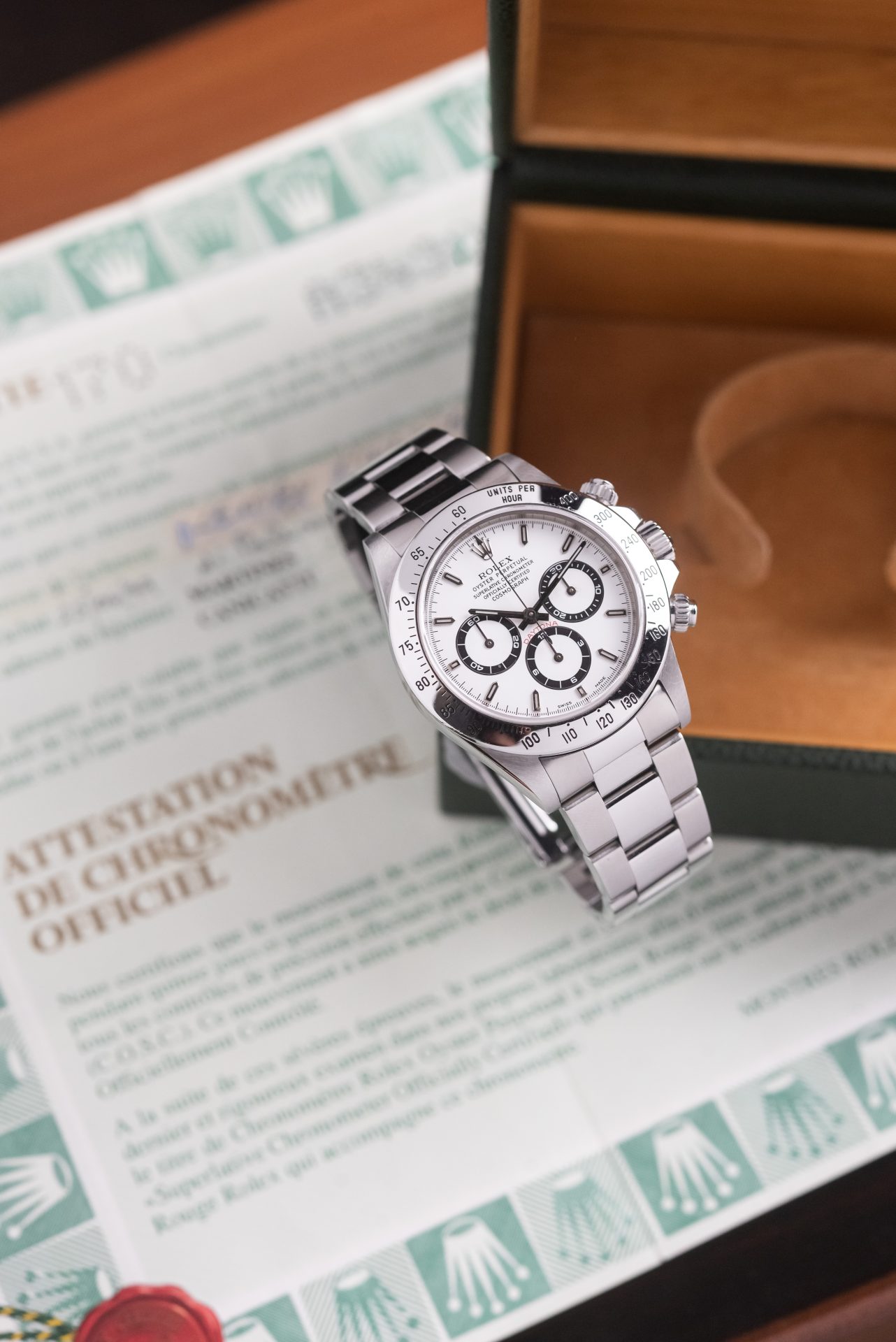 An iconic reference from the late 1990s, among the most sought-after in the series, featuring a Rolex-modified Zenith El Primero movement. The 16520 is considered the model that brought the Daytona back to the pinnacle of collectibles, thanks to the quality of the caliber and its now legendary aesthetic.