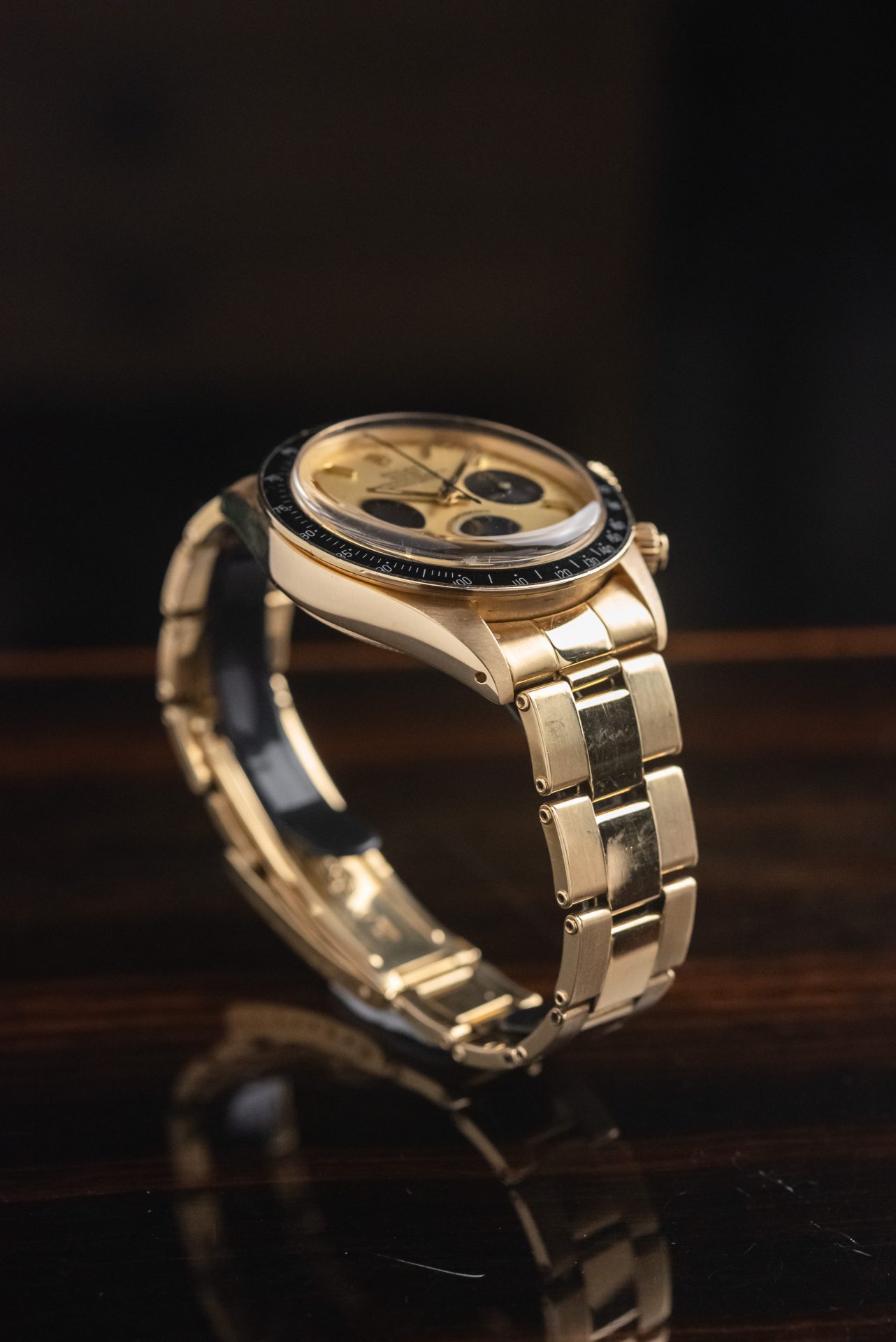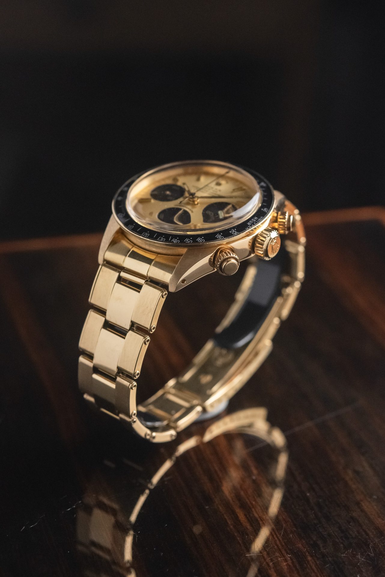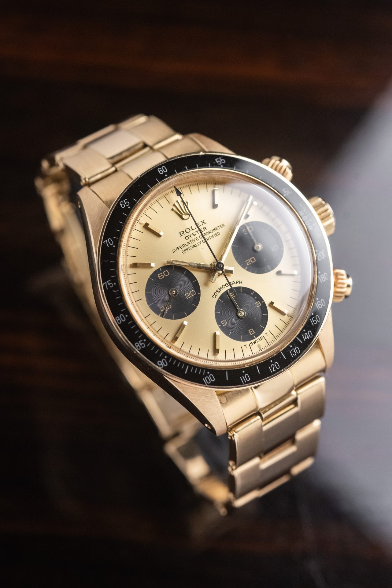 This stunning 1978 6263 Full Set in 18K yellow gold represents one of the rarest and most captivating expressions of the Rolex sports chronograph. The warm glow of gold combines with the black tachymeter bezel and champagne dial with contrasting subdials, creating a perfect balance between elegance and racing spirit. Produced in extremely limited numbers, the gold reference 6263 is today an absolute icon of refined and timeless vintage collectibles. Its full set status further enhances its historical and collectible value.