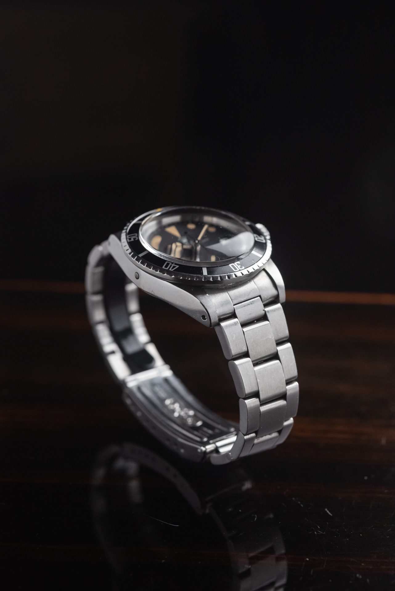 The stainless steel Oyster case, domed plexiglass crystal, and helium escape valve demonstrate Rolex’s pioneering approach to professional diving. The dial, with its warm, even patina, maintains an extraordinary aesthetic balance, enhanced by perfectly period-appropriate indexes and hands.